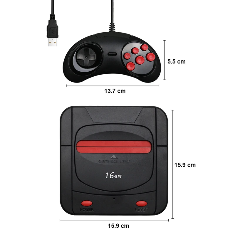 Retro Game Supports HMDI Output Latest version of the gamepad, do you feel very retro with childhood taste? I guess the answer must be! Our design philosophy starts from the trend and trend of the times, and widely accepts the opinions of customers to introduce this control handle for everyone! The improved version of the handle design makes the two gamepads look simpler and more elegant, giving the gamer a retro feel. The console is 16 bit with 2 gamepads, support HDMI output.